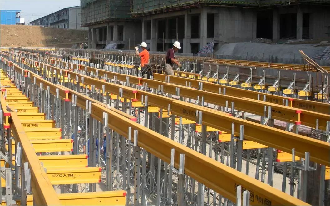 楼板支撑安装应按设计图纸要求进行布置,与框架梁施工穿插进行,尽可能减少施工工期。