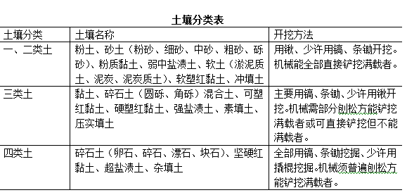 土壤分类表 本工程土方工程涉及的清单项目