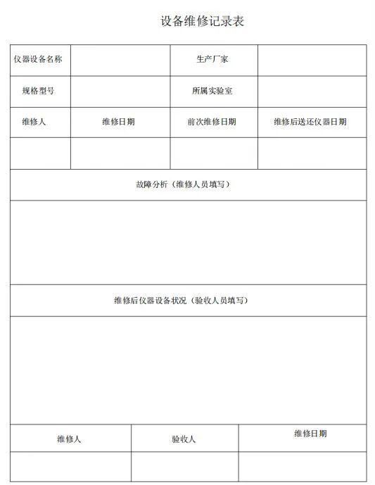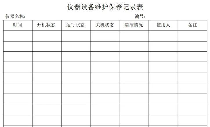 (2) 定期保养要求:每台仪器设备运行到规定的时间周期(保养周期)不管其技术状况好坏,任务轻重,都必须按规定的范围和要求进行保养工作,保养周期要根据各类仪器设备的磨损规律、运行条件、操作维护水平因素确定。仪器设备出厂说明书中规定有保养周期,按说明书规定执行;无规定周期的,由实验室根据实际情况制定。