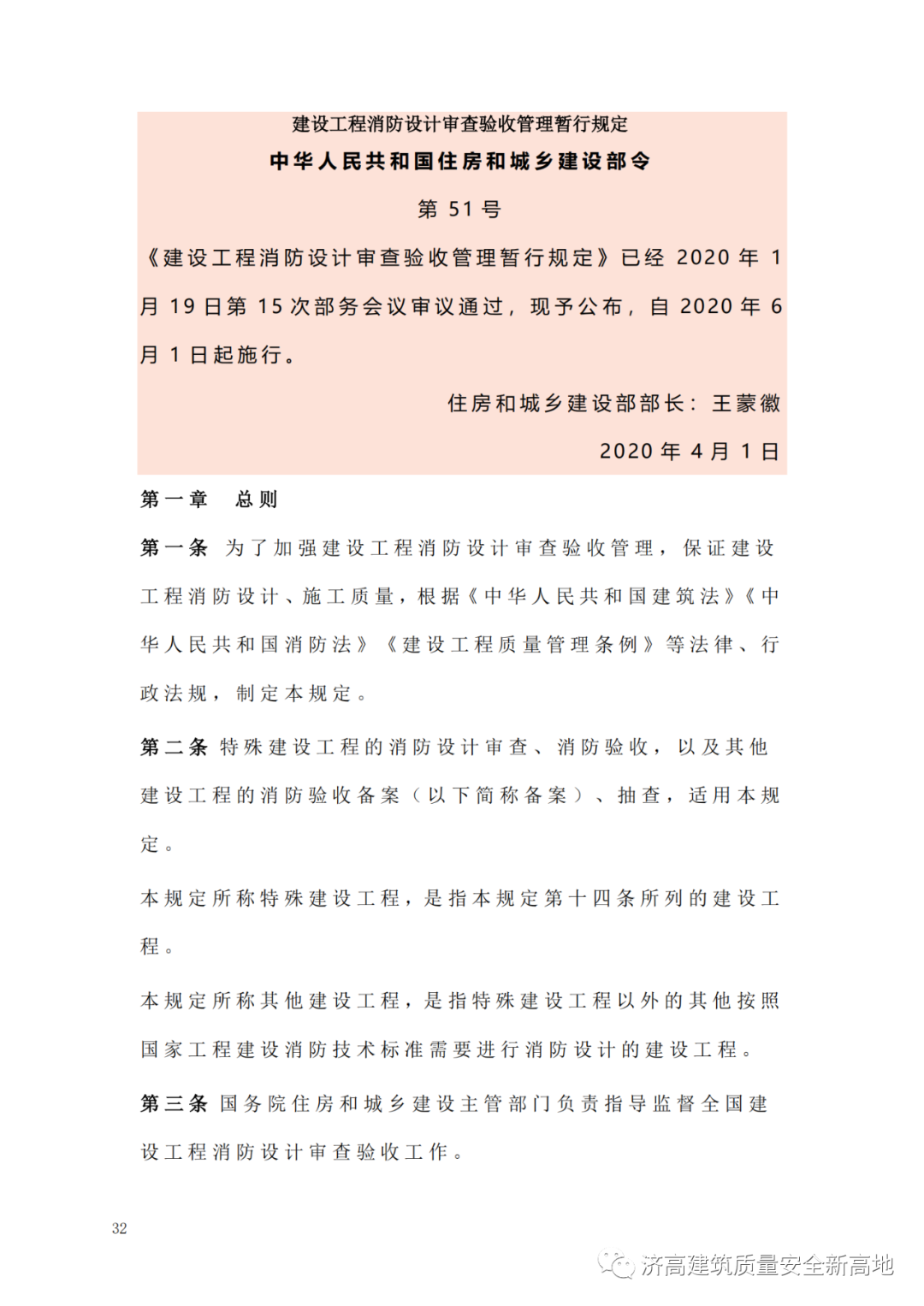 4、《建设工程消防设计审查验收管理暂行规定》中华人民共和国住房和城乡建设部令 第51号(2020年4月1日)第32页