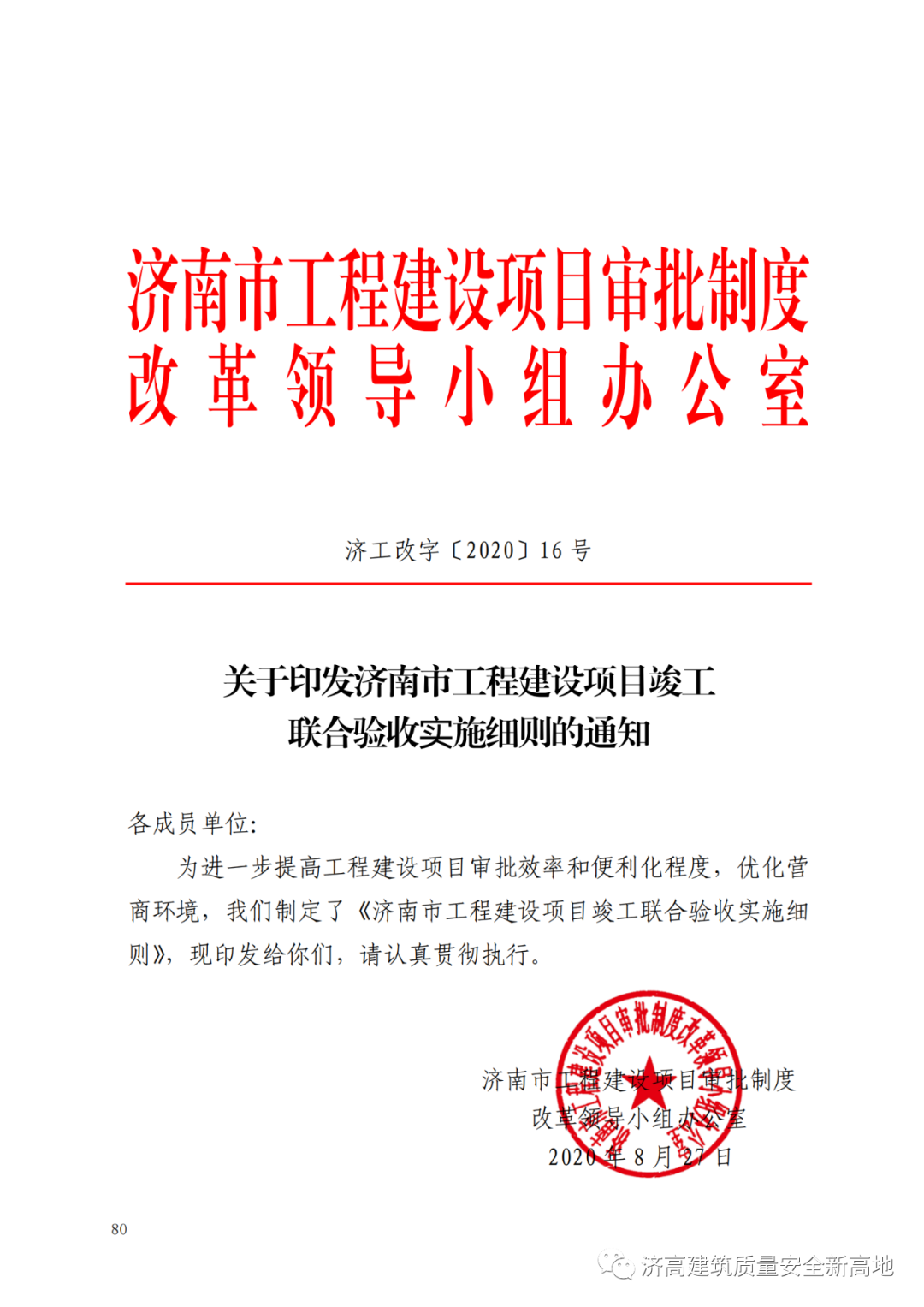 6、《关于印发济南市工程建设项目竣工联合验收实施细则的通知》-济工改字【2020】16号 第80页