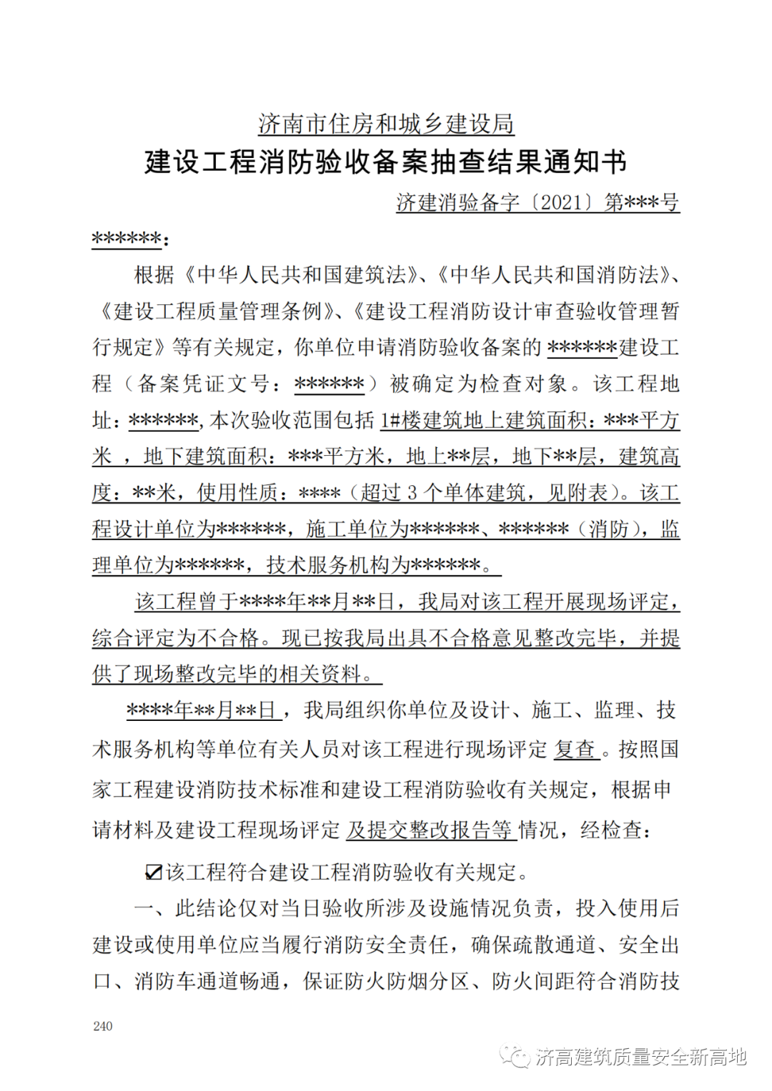 11、《关于进一步规范消防验收及备案抽查文本样式的通知》-济建消字【2021】2号 第234页