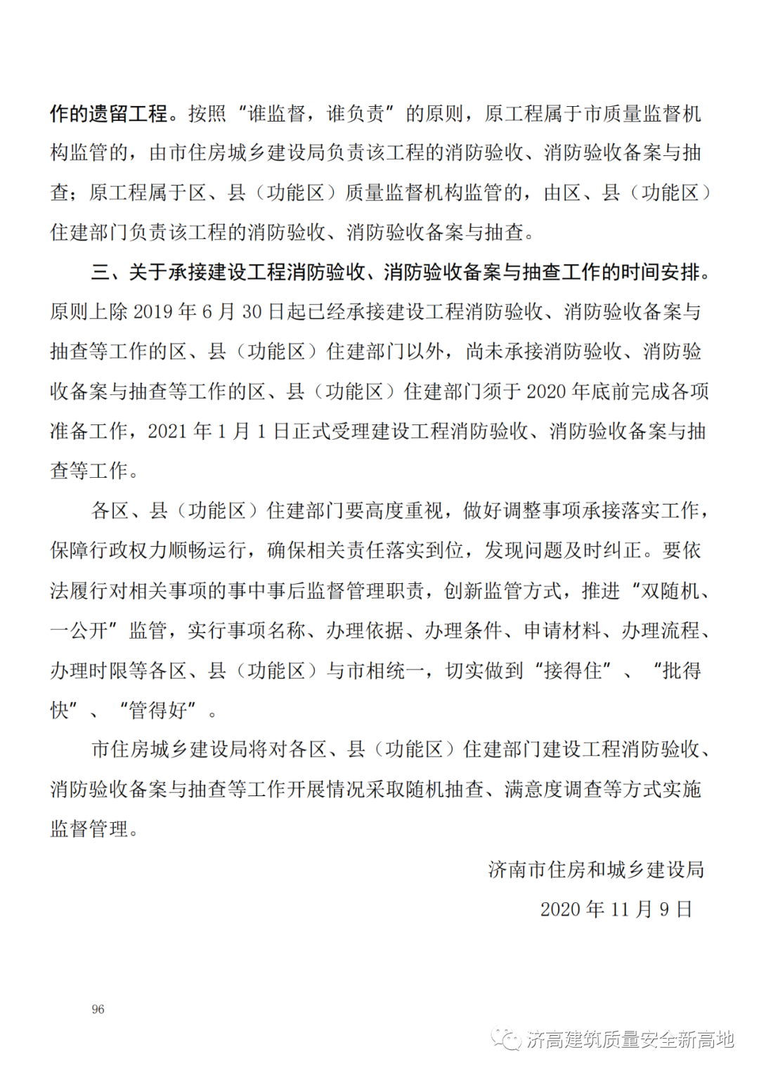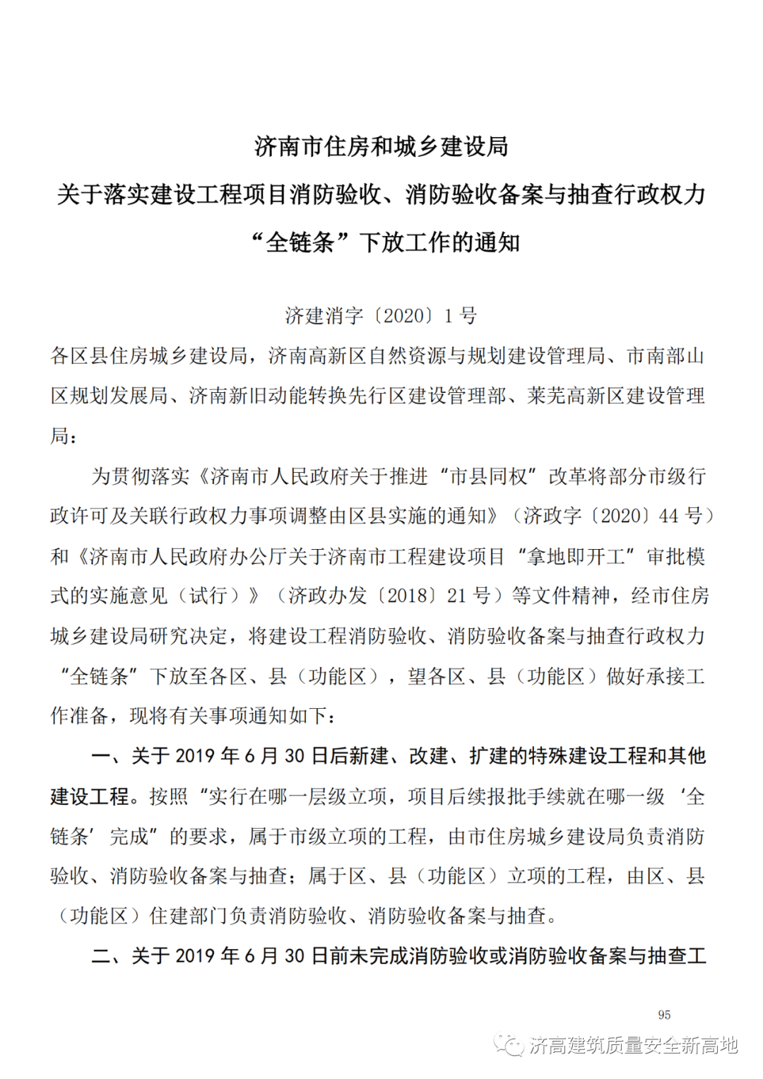 8、《济南市住房和城乡建设局关于落实建设工程项目消防验收、消防验收备案与抽查行政权力“全链条”下放工作的通知》-济建消字【2020】1号 第95页