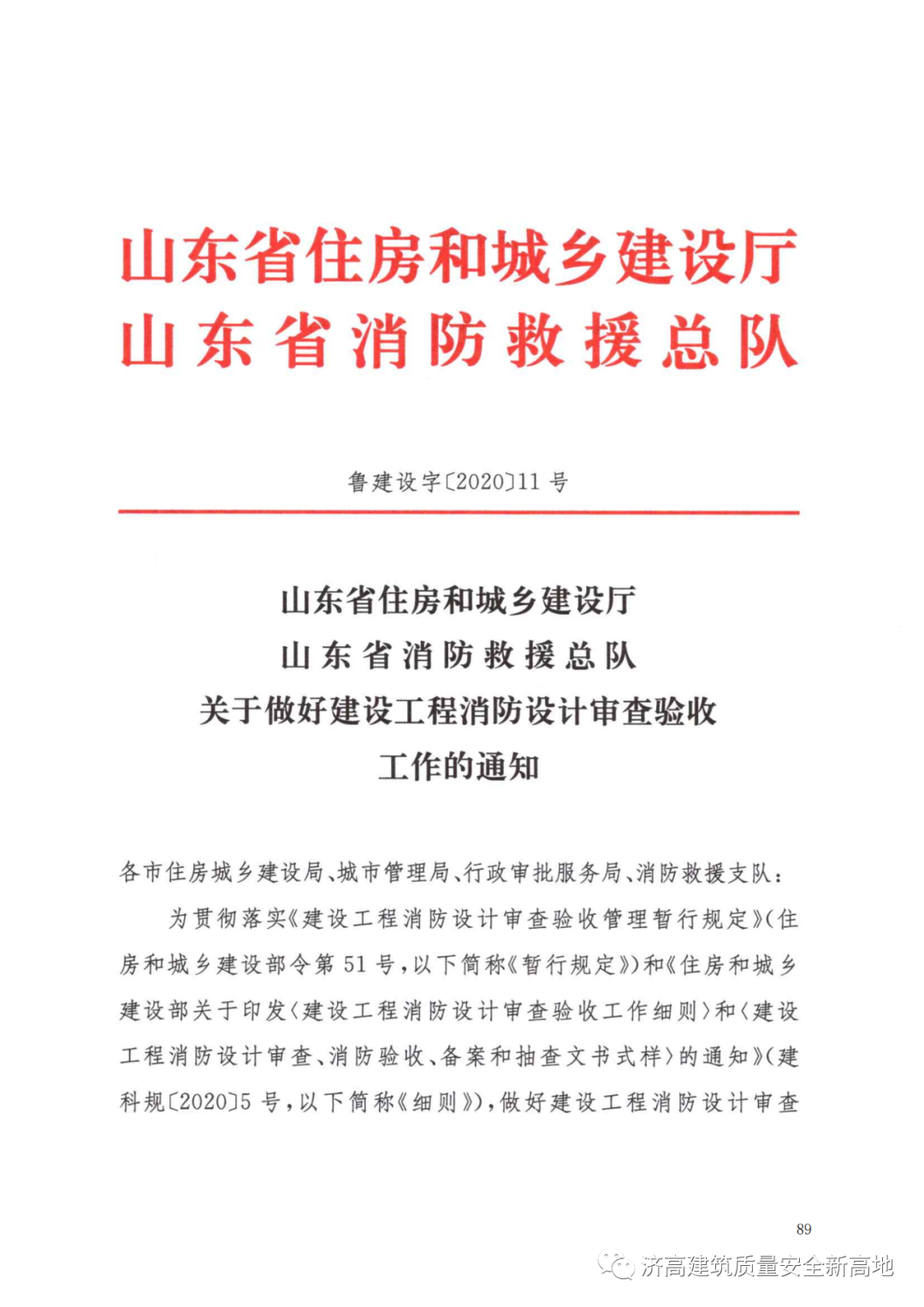 7、《关于做好建设工程消防设计审查验收工作的通知》-鲁建设字【2020】11号 第89页