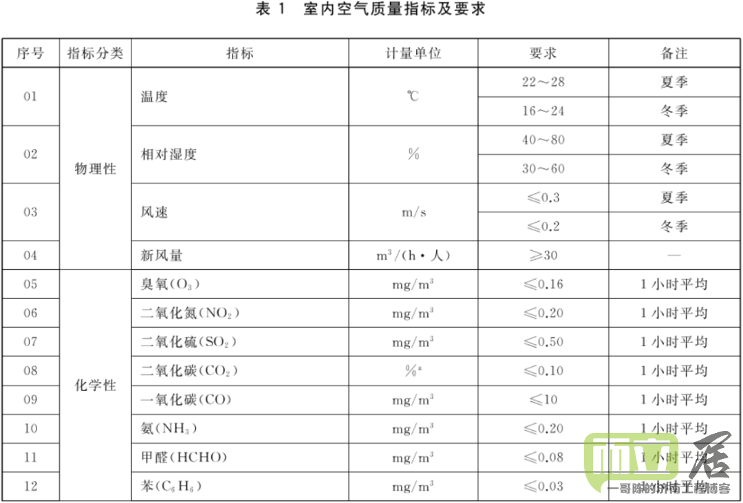 2、调整了5项化学性指标(二氧化氮、二氧化碳、甲醛、苯、可吸入颗粒物)、1项生物性指标(细菌总数)和1项放射性指标(氡)要求。(注:二氧化碳限值虽未调整,但是要求由“日平均值”修改为“1h平均值”,其他指标均有收严。)